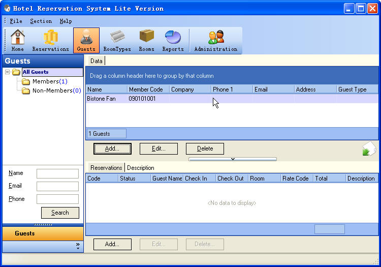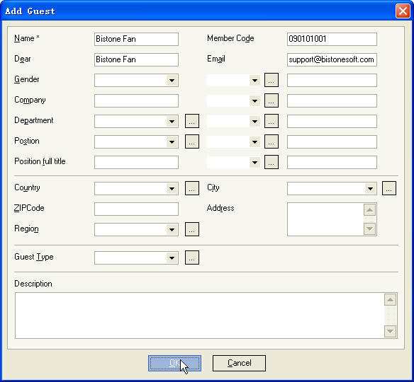 ii) Enter guest name and member code, as Figure 2 shows Figure 2 Edit Guest Dialog iii) Then Click OK Button, the member guest is added to Right Guest List, as Figure 3 shows