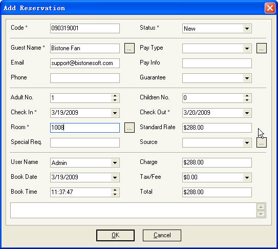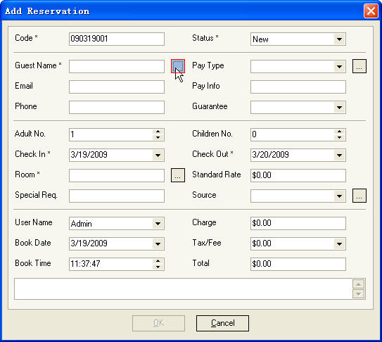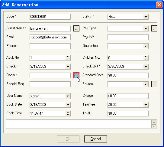 Button, room and rate are filled automatically, as Figure